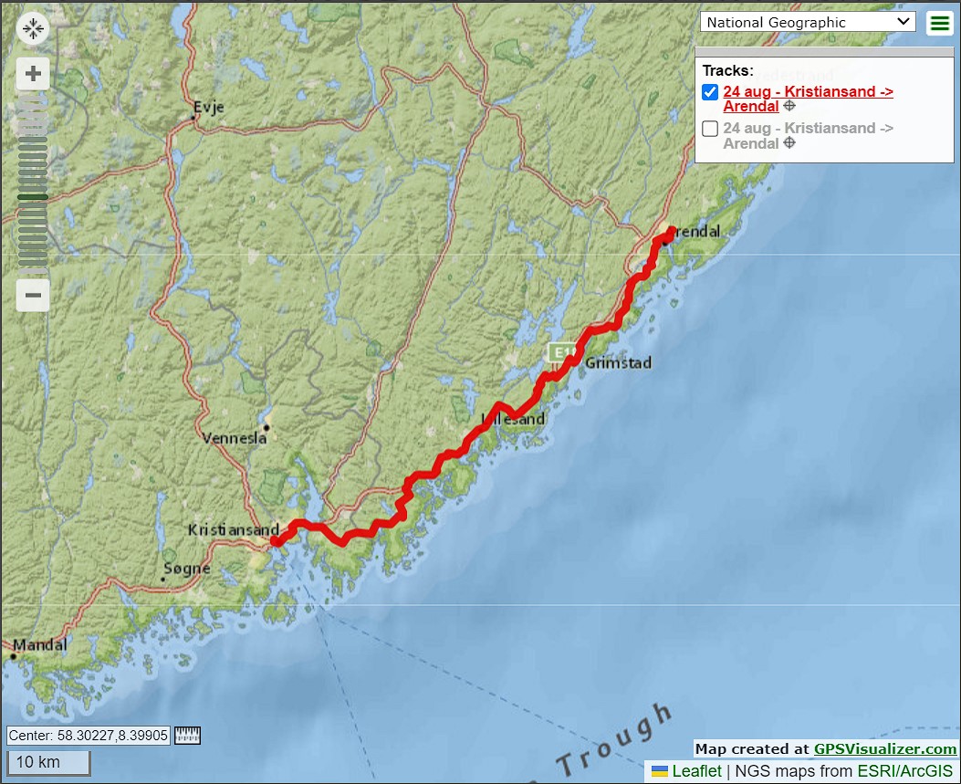 Van Grimstad naar Kristiansand. Laatste stukje Noorwegen opweg naar de boot.